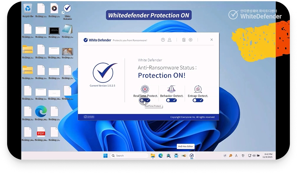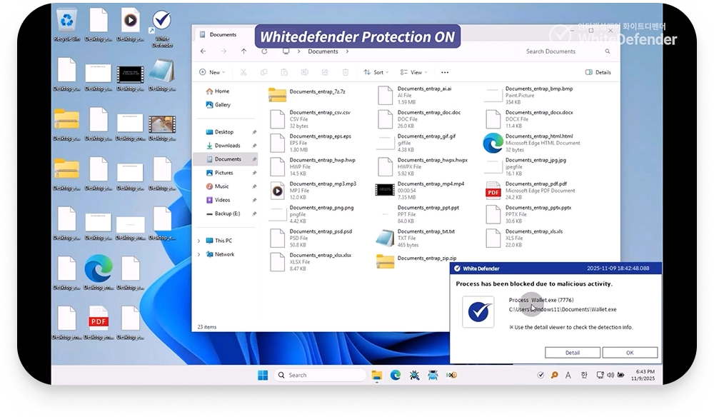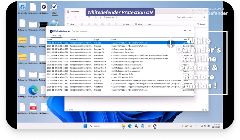 ランサムウェアの疑わしいふるまいを捉えたその瞬間、White Rollback Engineが作動。ファイルが破壊される前に元データを安全な保護領域へ瞬時にバックアップし、最悪の事態に備えます。