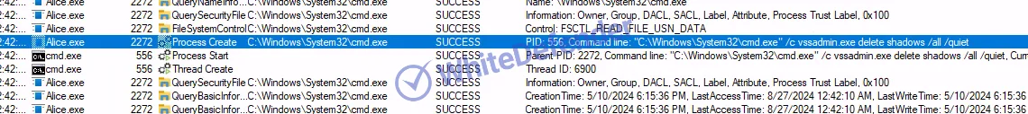 2回目の実行時に、シャドウコピーの削除および暗号化処理が実行される特徴があります。
