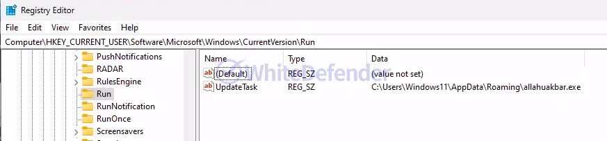 <スタートアップレジストリ位置へのランサムウェア実行ファイルの登録>