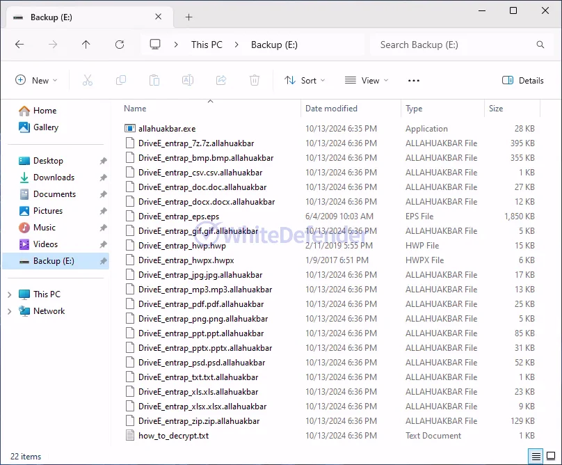 本ランサムウェアは「AllahuAkbar」と称しており、感染したファイルの拡張子を「.allahuakbar」に変更する挙動が確認されています。