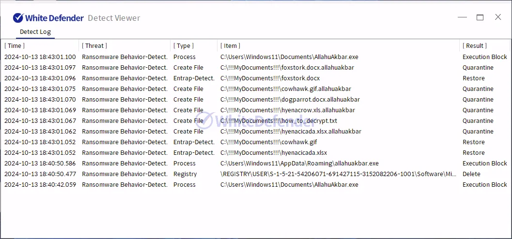 本製品(WhiteDefenderを想定)は、ランサムウェアの悪性動作を検知・遮断する以前に、暗号化対象となるファイルに対してリアルタイムでの自動復元機能をサポートしています。