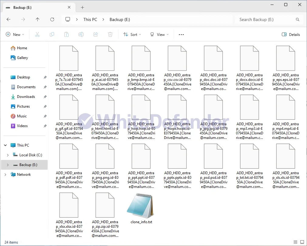 本ランサムウェアは「Clone」と呼称されており、感染したファイルの拡張子を「.id-個人Key8桁.[CloneDrive@mailum.com].Clone」の形式に変更し、データを暗号化する挙動が確認されています。