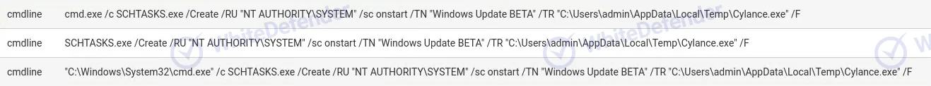 権限昇格を目的として、タスクスケジューラを利用しランサムウェアを再度実行させる動作が確認されています。