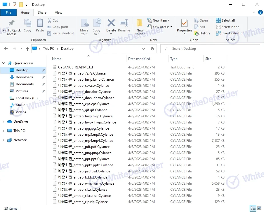 本ランサムウェアはCylanceと呼称されており、感染したファイルは「元のファイル名.元の拡張子.Cylance」という形式に変更される挙動が確認されています。
