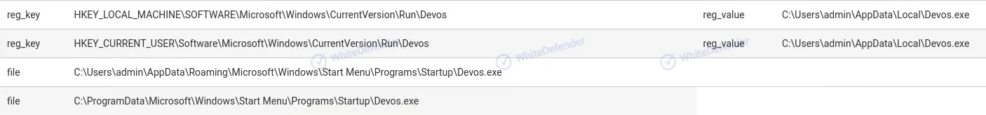 Devosランサムウェアは、実行後、システム内で持続性を確保し、復旧を妨害するために以下の悪性動作を実行します。
