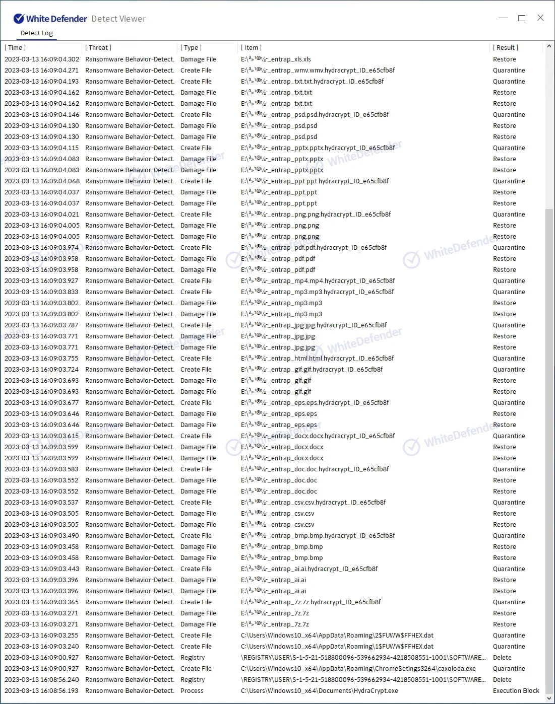 本件は、HydraCryptと称されるランサムウェアによるものと見受けられます。本マルウェアは、感染対象ファイルの拡張子を「元のファイル名.元の拡張子.hydracrypt_ID_個人キー」の形式に変更し、データを暗号化する挙動を示しています。