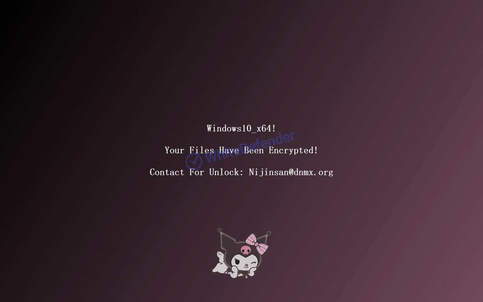 身代金要求メモ(ランサムノート)は別途存在せず、暗号化完了後、変更されたデスクトップ上に通知内容が記載されます。暗号化処理が完了したファイルは「<ファイル名.元の拡張子.invader>」の形式に変更されます。