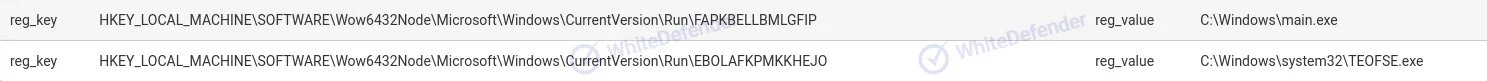 マルウェアは、特定のシステムディレクトリに自身または追加の実行ファイルを生成します。その後、システム再起動後も自動的に実行されるよう、スタートアップ機構(レジストリまたはスタートアップフォルダ)に登録することで、持続性(Persistence)を確保します。
