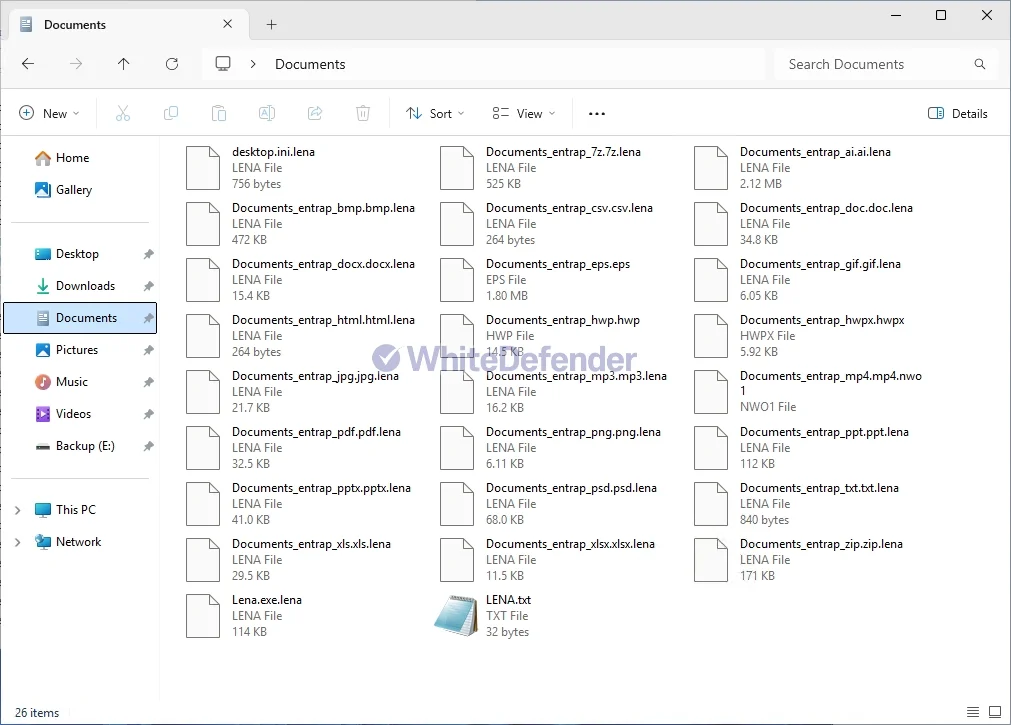 本マルウェアは「Lena」と呼称されており、感染したファイルの拡張子を「.lena」に変更する挙動が確認されています。