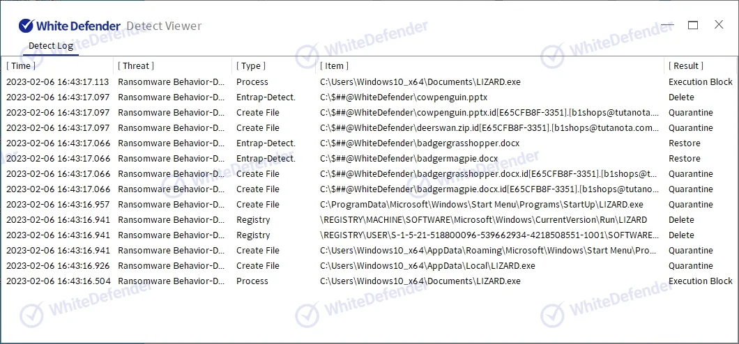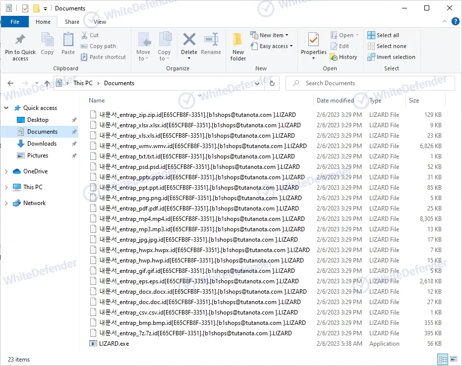 暗号化されたファイルは、元のファイル名に加えて、.id[個人キー].[b1shops@tutanota.com].LIZARDという形式の拡張子が付与されます。