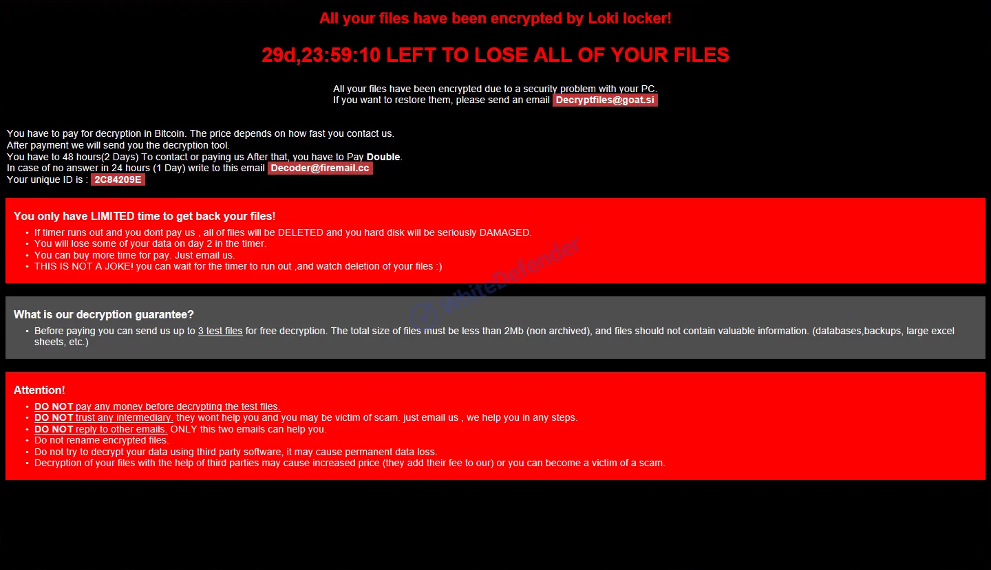 本ランサムウェアは「Lokilocker」と呼称され、感染したファイルの拡張子を「.Loki」に変更する挙動が確認されています。