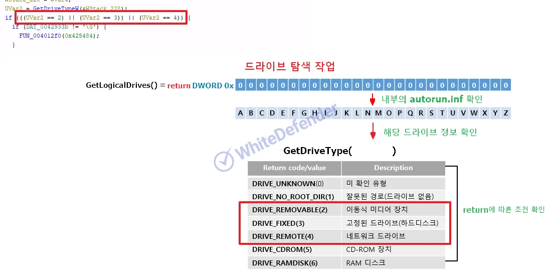 C++ベースで開発されており、重複実行を防ぐためのミューテックス(Mutex)を使用しています。また、GetLogicalDrives APIを呼び出し、ローカルドライブ、リムーバブルメディア、およびネットワークドライブを含む広範なドライブを列挙し、攻撃対象としています。