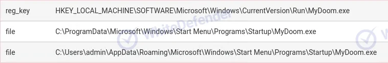 MyDoomランサムウェアがシステムに侵入した後、暗号化を実行し、持続性を確保するために実行する主要なプロセスは以下の通りです。