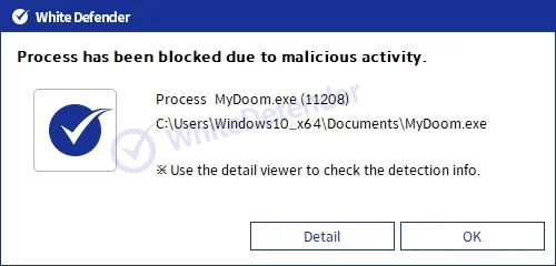 ランサムウェアの悪性な挙動を検知・遮断した際のメッセージ例を以下に示します。