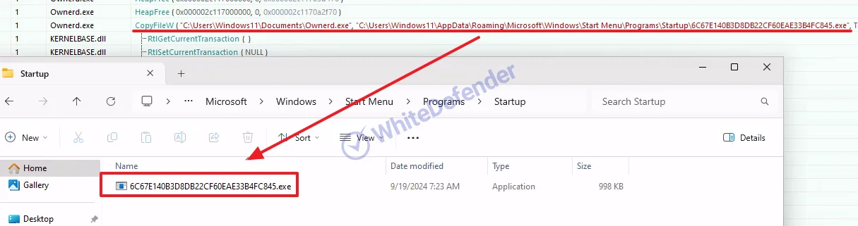 C++ベースで構築された本ランサムウェアは、実行後、自身の実行ファイルを Roaming フォルダ内のスタートアップディレクトリにコピーし、持続性(Persistence)を確保します。