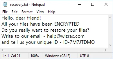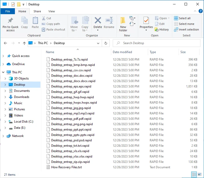 暗号化処理が完了すると、各ディレクトリ内に身代金要求ファイルとして「How Recovery Files.txt」が生成されます。また、暗号化されたファイルは「元のファイル名.元の拡張子.rapid」の形式に変更されます。