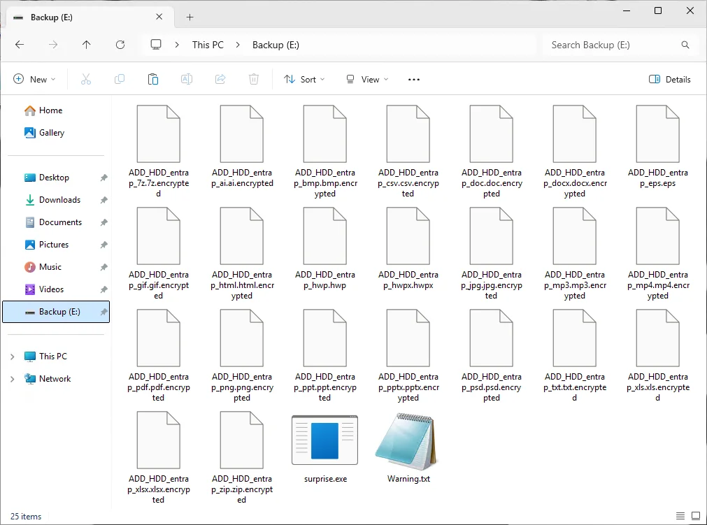 • 主にWindowsのルートドライブを標的としますが、他のドライブ直下に surprise.exe というファイルを生成し、リムーバブルメディアが接続された際にさらなる拡散および感染を誘発する可能性があります。