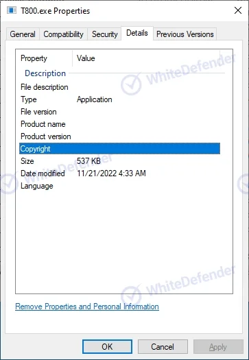 T800ランサムウェアの検体について、ファイルバージョンおよび属性の分析を実施しました。